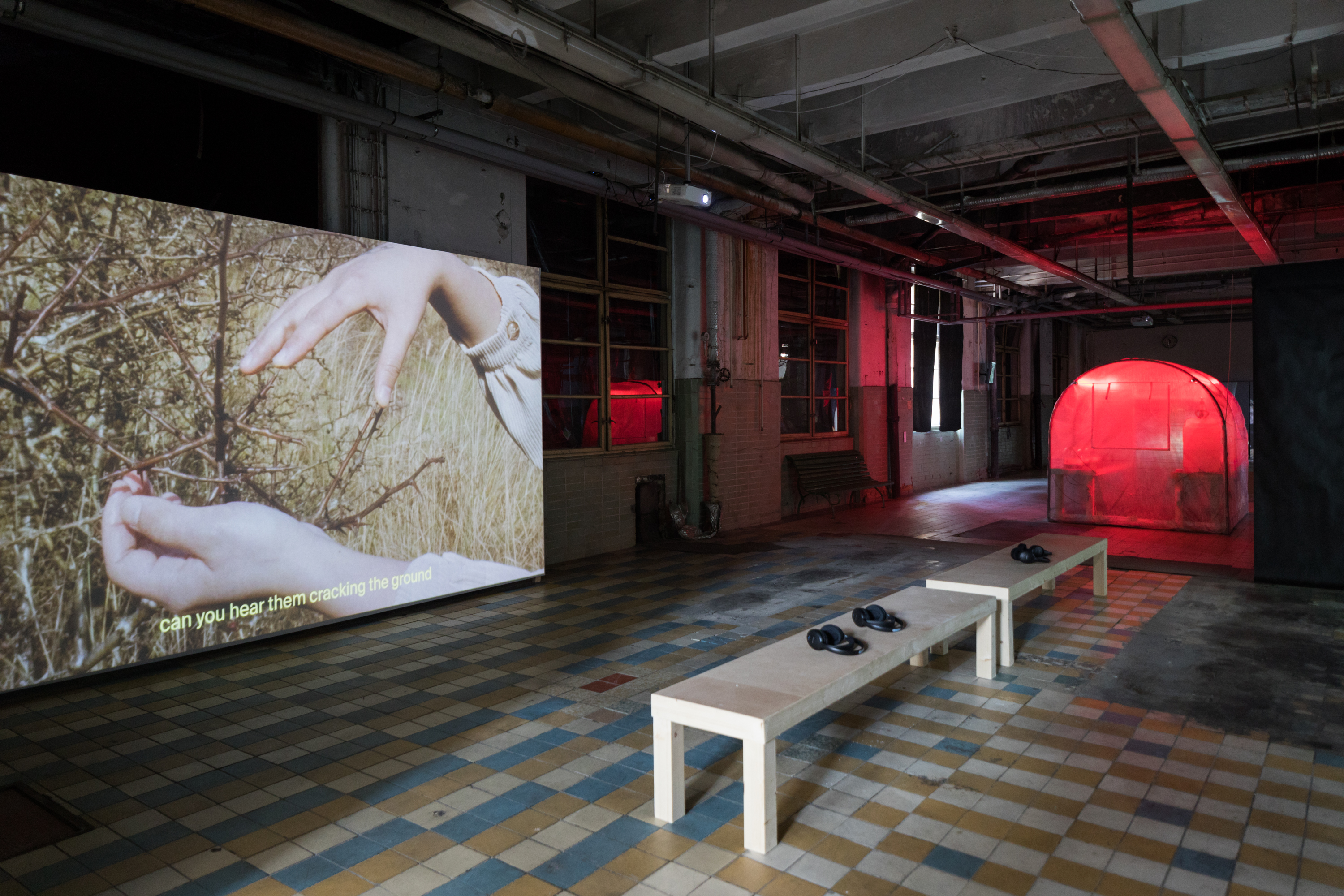 Marie Tučková is an artist who works with installations combining performative, audio, and visual elements. These elements are often interconnected through text, transformed into lyrics, a video voice-over, an audio story, or a performance script. Her work investigates the politics of listening, the hierarchy of voices, various forms of collaboration, and the overlapping of political and poetic language. The artist’s new multi-chapter work merges polyphonic songs with poetry and theory through a collaboration with a number of dancers, performers, and musicians. It presents the womb as a site of polyphony and constant sound resonance, investigating the political dimensions of listening in order to overcome the hierarchies between what we perceive as a message and as noise. It further interweaves the stories of fluid bodies—the body of a dead river, standing for dying ecosystems, and the female, trans, and queer body subjected to exploitation by capitalism and reproductive control by the heteronormative, particularly ultra-Christian patriarchy. Conceived as a song for the human animal and more-than-human species, singing and sighing pours out as a liquid from an open wound and as an exhalation in the process of learning through listening.