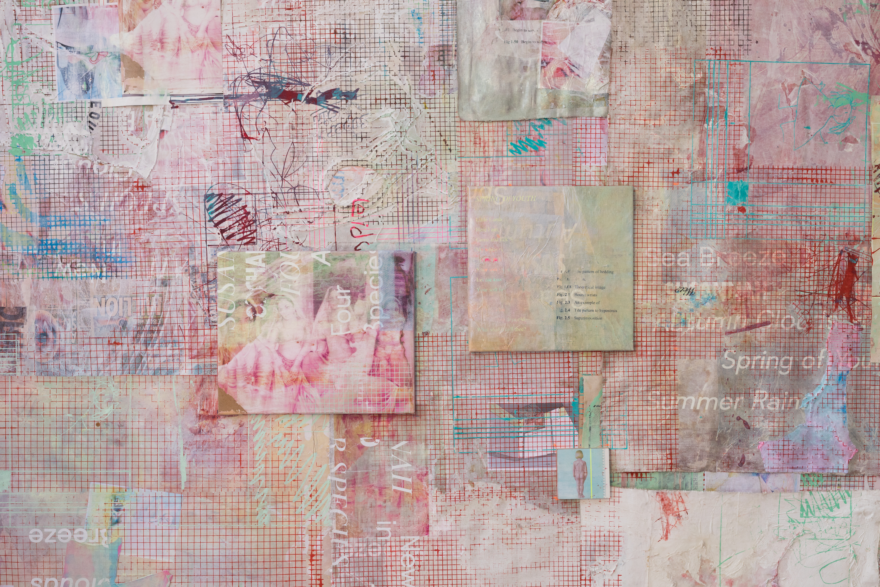 Mandy El-Sayegh (*1985) has a highly process-driven practice rooted in an exploration of material and language. In her paintings, table vitrines, immersive installations, and videos, El-Sayegh creates layered anthologies of found text and images. Set adrift from their original contexts, these fragments become open to multiple readings that are personally, socially, or politically determined and undermine the supposed objectivity of language and media. In 2022, she will be featured in The British Art Show, the largest touring exhibition of contemporary art in the UK. Solo exhibitions of El-Sayegh’s work have been organized at UTA Artist Space, Los Angeles, USA (2022); Galerie Thaddaeus Ropac, Paris, France (2021); Lehmann Maupin, Seoul, South Korea (2021); Sursock Museum, Beirut, Lebanon (2019); Bétonsalon, Paris, France (2019); Chisenhale Gallery, London, UK (2019); Lehmann Maupin, Hong Kong (2019); and The Mistake Room, Guadalajara, Mexico (2018).