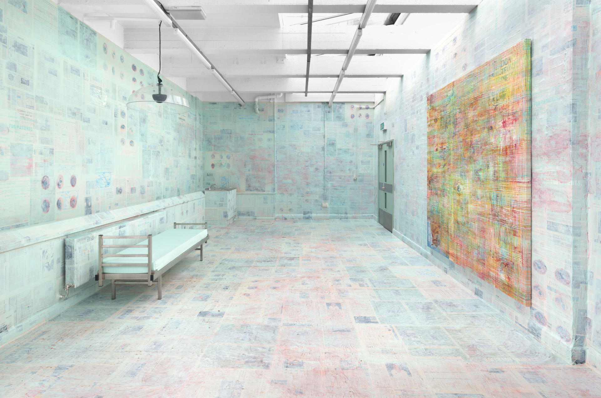Mandy El-Sayegh’s painterly language draws on an unlawful diplomacy, mining the euphoric elements of excess and debris to create psychosocial collages. The artist’s process unfurls how systems of conversion and preservation work amidst the innate poverty in conditions and materials, which for El-Sayegh, are surfaces for building layers. Building here resembles the diligence of marking: a passage that deepens a wound, a map that blossoms into grids of pain. The immersive installation features an original score by composer Lily Oakes, foregrounding intimate dialogues and ambient sounds. In her video performance, Alice Walter similarly draws on a vulnerable voice to examine processes of psycho-regression. A medium and artist, Walter’s sculptural sets undergo a process of psychometric rituals to make space for rhythm and trance. A loop of endless hope, the visual and sonic palette of the VHS video produces a sense of intimacy at odds with its surrounding conditions of cruelty. Together, the artists in this installation unstitch the body and lay bare its bruised fantasies. Signalling a departure from the promise of recovery, they admit that, after all, there are no exit wounds.
