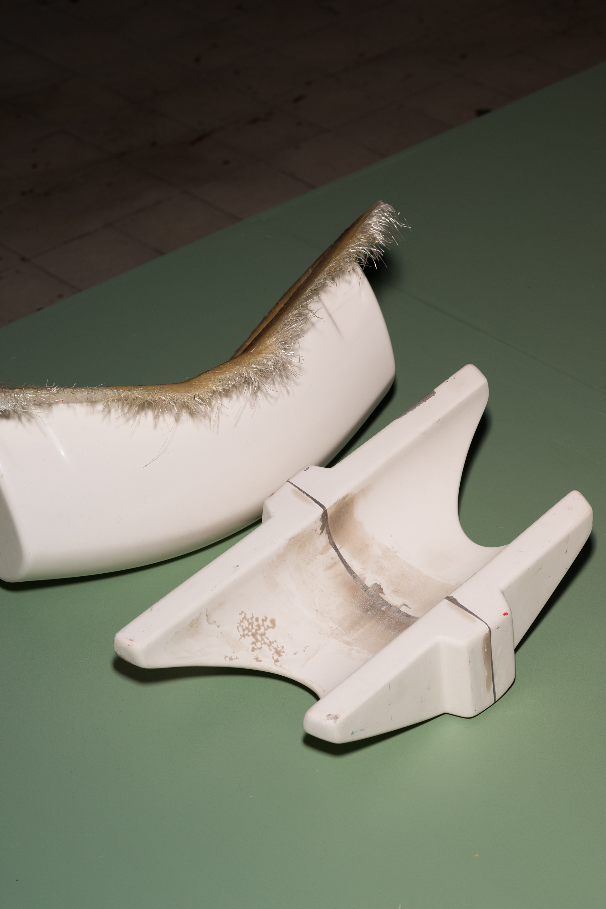 In the installation accompanying the videos, we are surrounded by bits and pieces resembling debris. They look like traces of a catastrophe, clues supposedly leading us to a solution for the undefined case. The question that remains is where are the people who did not make it to the boat?