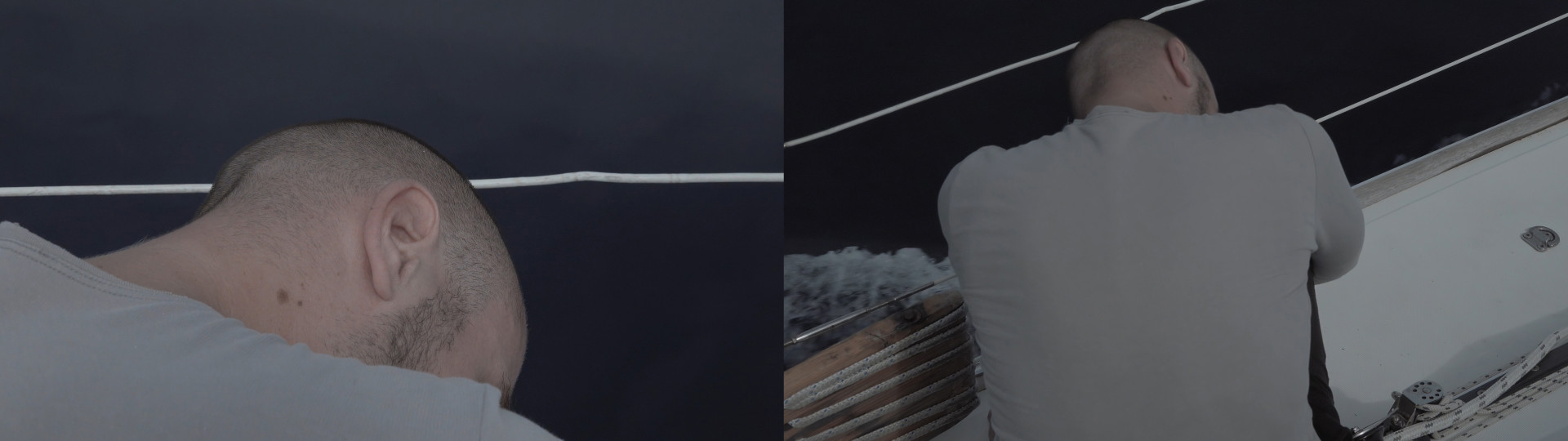 We follow a group of people sailing aimlessly on open water. The sea seems immense, and the boat resembles a trap where everyone is exposed to overwhelming dizziness. Something went terribly wrong. Was there a crash or a fail? Why does everyone on the boat seem sick? Are we sailing on a wreck? What happened to the others?