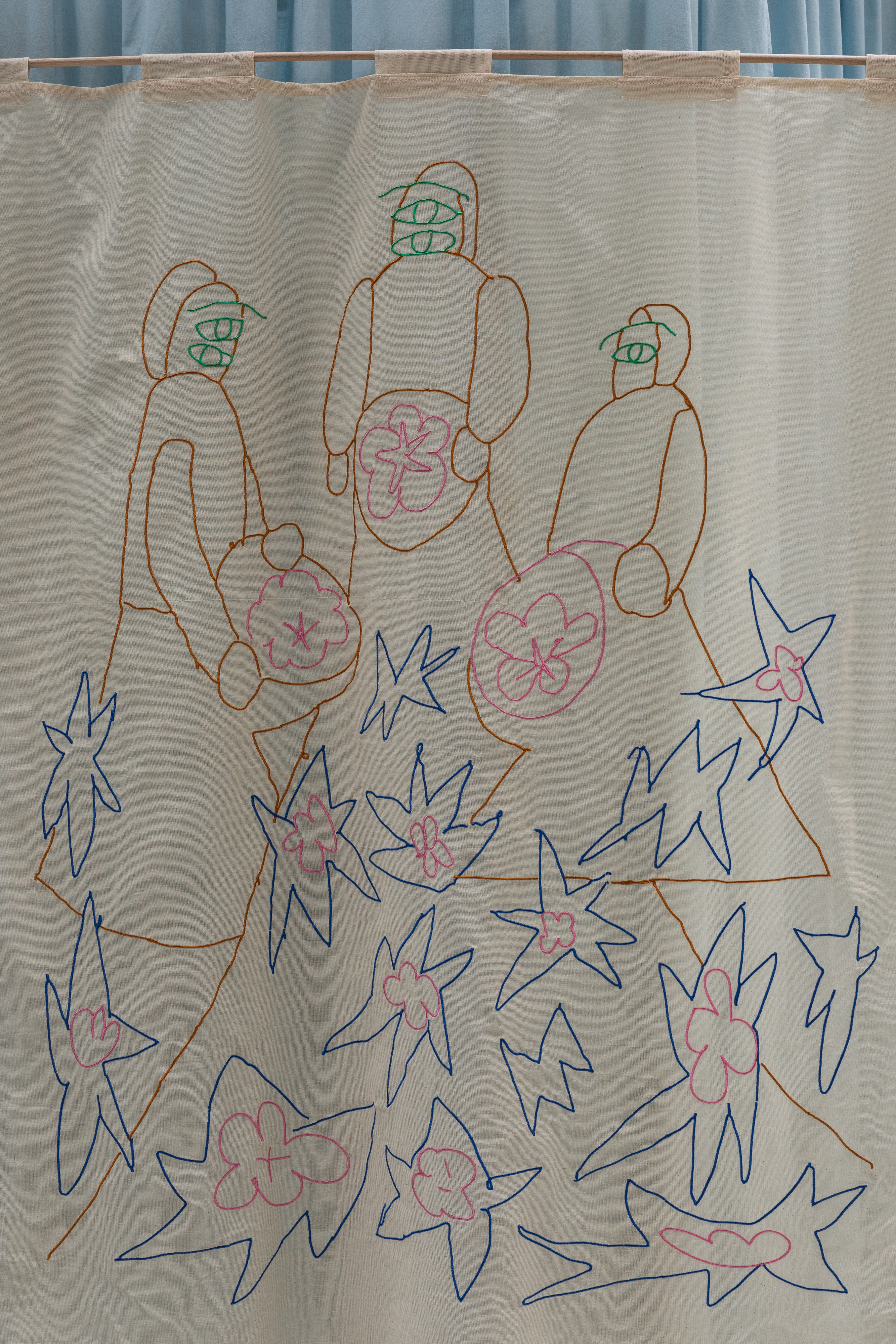 Madina Joldybek is a London-based multidisciplinary artist and educator originally from Kazakhstan. Her practice revolves around themes of bodily integrity, womanhood, multi-dimensional motherhood, and authoritarian regimes. Joldybek employs various mediums such as illustration, weaving, sculpture, and installation in her work. Selected exhibitions, institutions, and public programs that have showcased her work include Asia NOW in Paris, Tbilisi Art Fair, JOAN art space in Los Angeles, W3 Gallery in London, the Centre for Heritage, Arts, and Textile in Hong Kong, documenta fifteen in Kassel, Kingshill House in Dursley, Slavs and Tatars’ Pickle Bar in Berlin, Garage Museum, and Aspan Gallery in Almaty. Her work is part of the public collection at the Kasteev State Museum of Arts. Joldybek was the first laureate of the B. Bubikanova Art Prize.