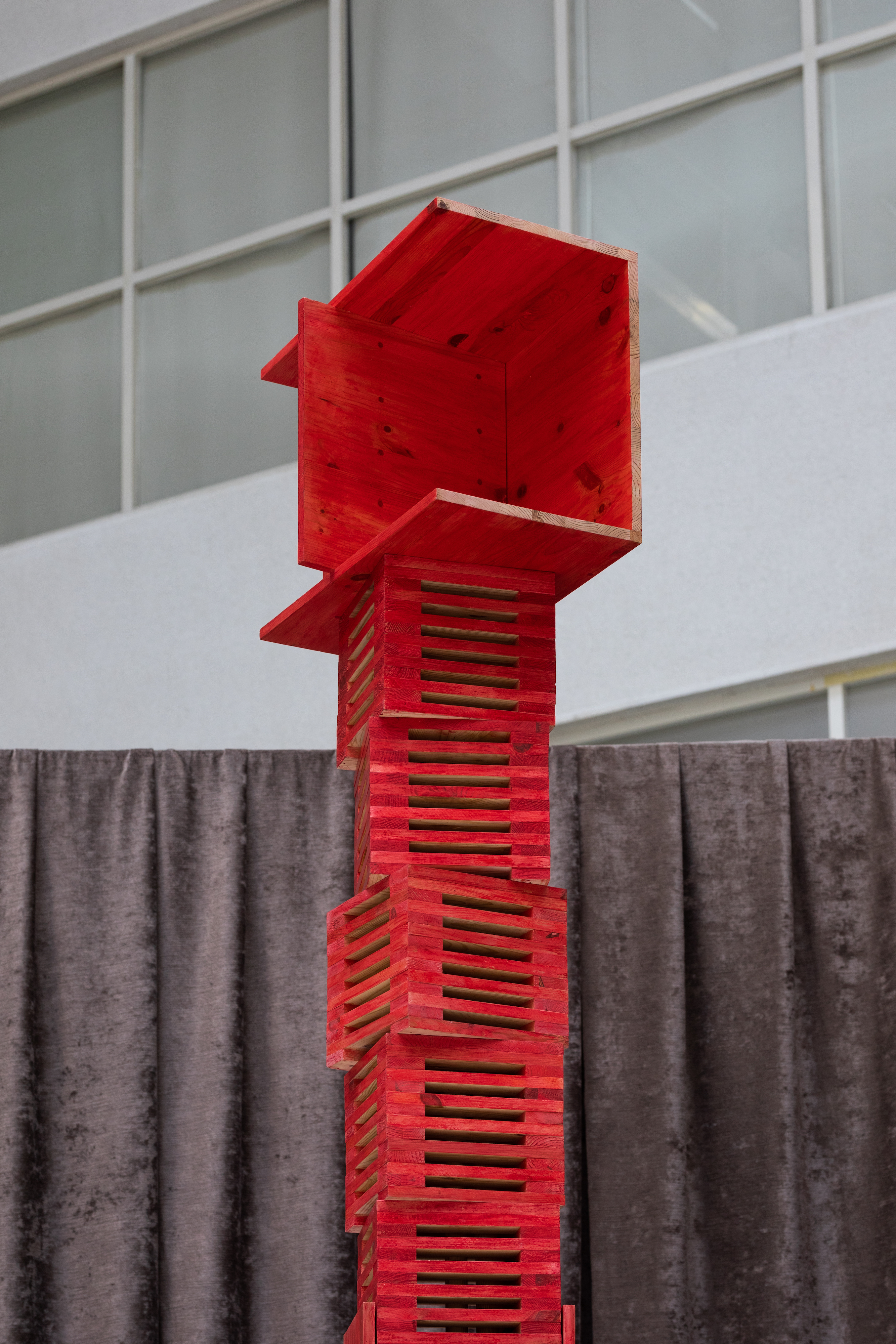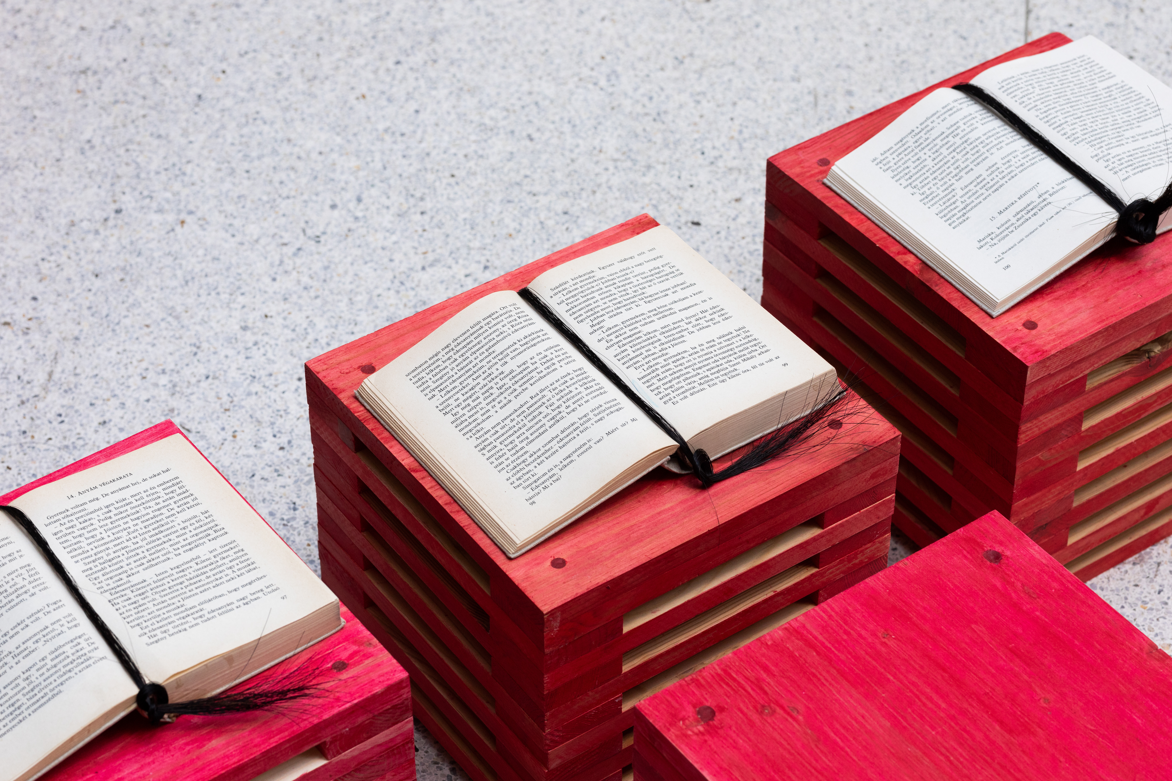 Dominika Trapp (lives in Budapest, b. Budapest (Hungary), 1988) looks into the life of women in traditional rural and patriarchal communities. Women experienced many difficulties, but rarely had a chance to talk about them. They faced many challenges, like marriage issues, childbirth, raising and losing many children, and working hard both in the fields and at home. These difficulties were often kept quiet. Usually, only the closest ones to the women knew about their struggles. Otherwise, their stories remained unwritten. Olga Nagy, an ethnographer from Transylvania, Romania, changed this with her Book of Women. Between 1975 and 1984, she collected the oral histories of peasant women, allowing their voices to be heard. One of these stories is titled Lay Him Not upon Me. This was the dying wish of a woman, who asked that if she dies first, her husband’s body would not be placed upon hers in the grave. She didn’t want him weighing down on her even in her final resting place. Dominika Trapp's installation is inspired by folk culture. It honors this woman and her story. It gives form to her many burdens. Dominika created various chair designs to stand for the 15 children – born, unborn, and deceased – that the woman had had. These chairs form a column, with the oppressive husband on top and the woman at the very bottom – the base of the family. A painting, a drawing and a sound piece go with the sculpture. In these Dominika Trapp shares more examples of women's gestures of resistance in peasant society.