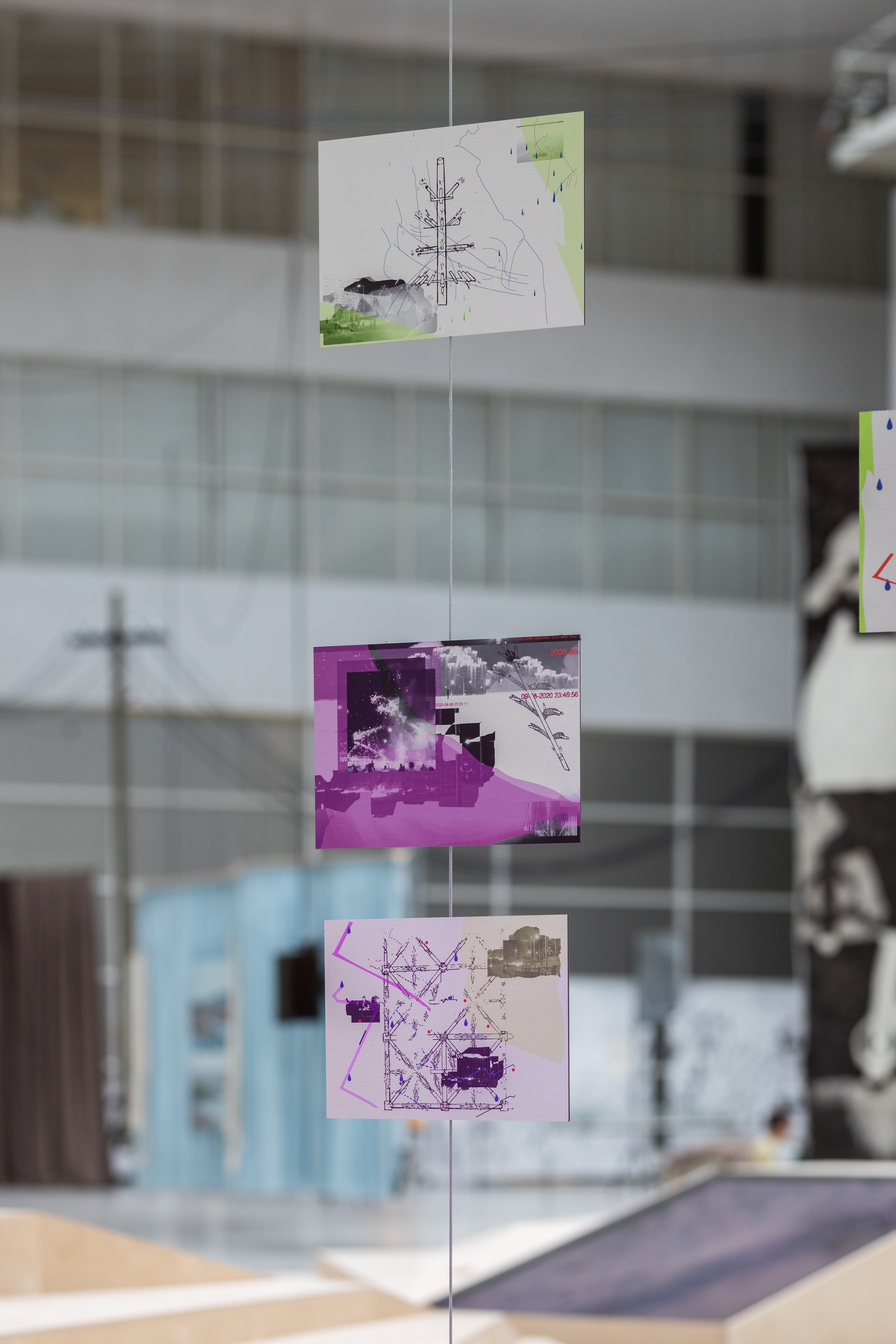 Outdoors, Gunpowder Burns Quietly. In a Closed Space Gunpowder Explodes. / 2024 / installation / digital collages, digital prints on metal (each 20 × 30 cm) / courtesy of the artist