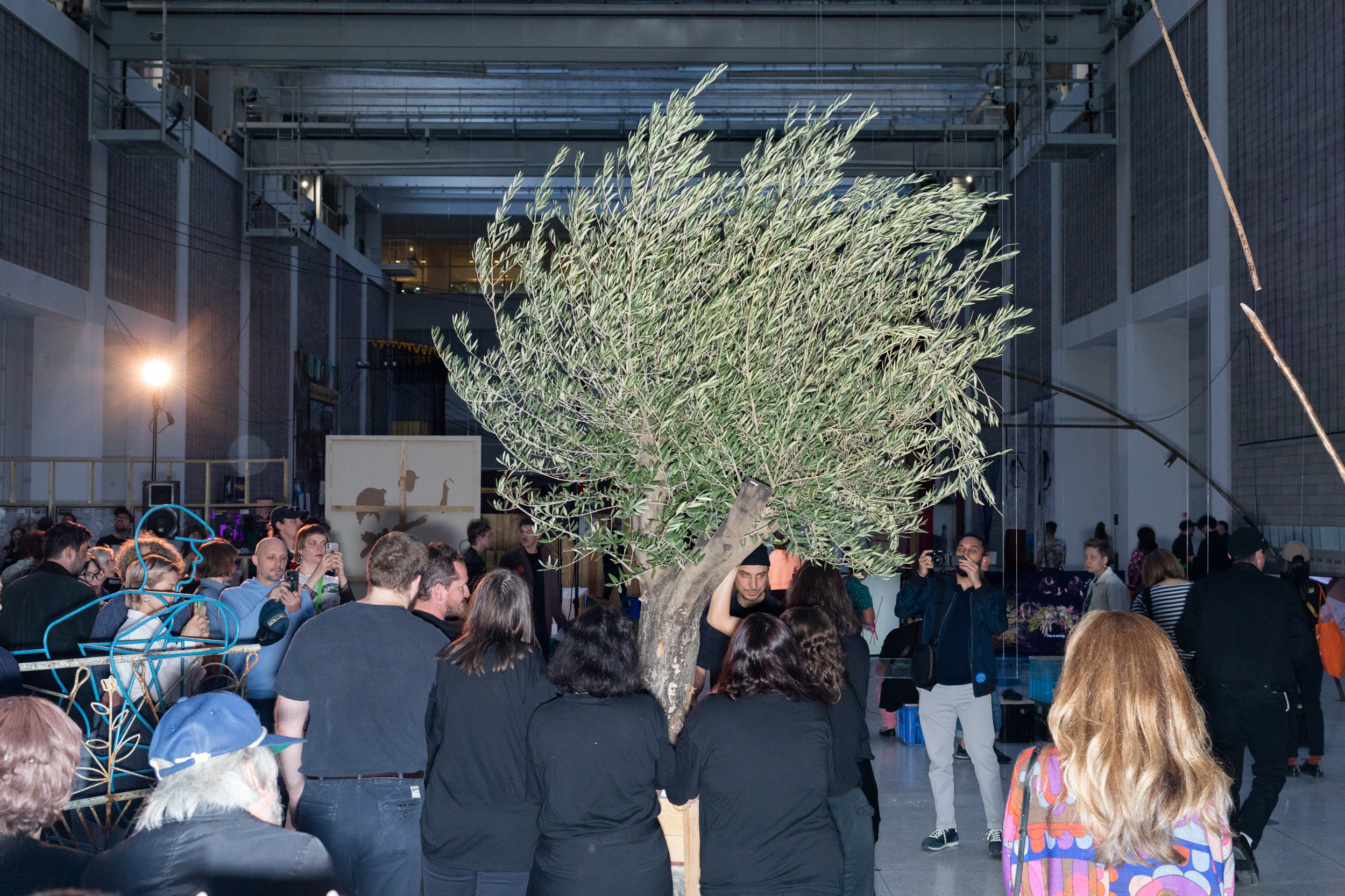 The collective stopgenocidevgaze returns to the Trade Fair Palace for the second time in the scope of the Biennale Matter of Art. As part of its performance during the opening, it will bring a centuries-old olive tree into the space, which it will then let die gradually over the course of the exhibition from June to September. In doing so, they imaginatively connect the tree with the tragic fate of the Palestinians in Gaza and the occupied West Bank.