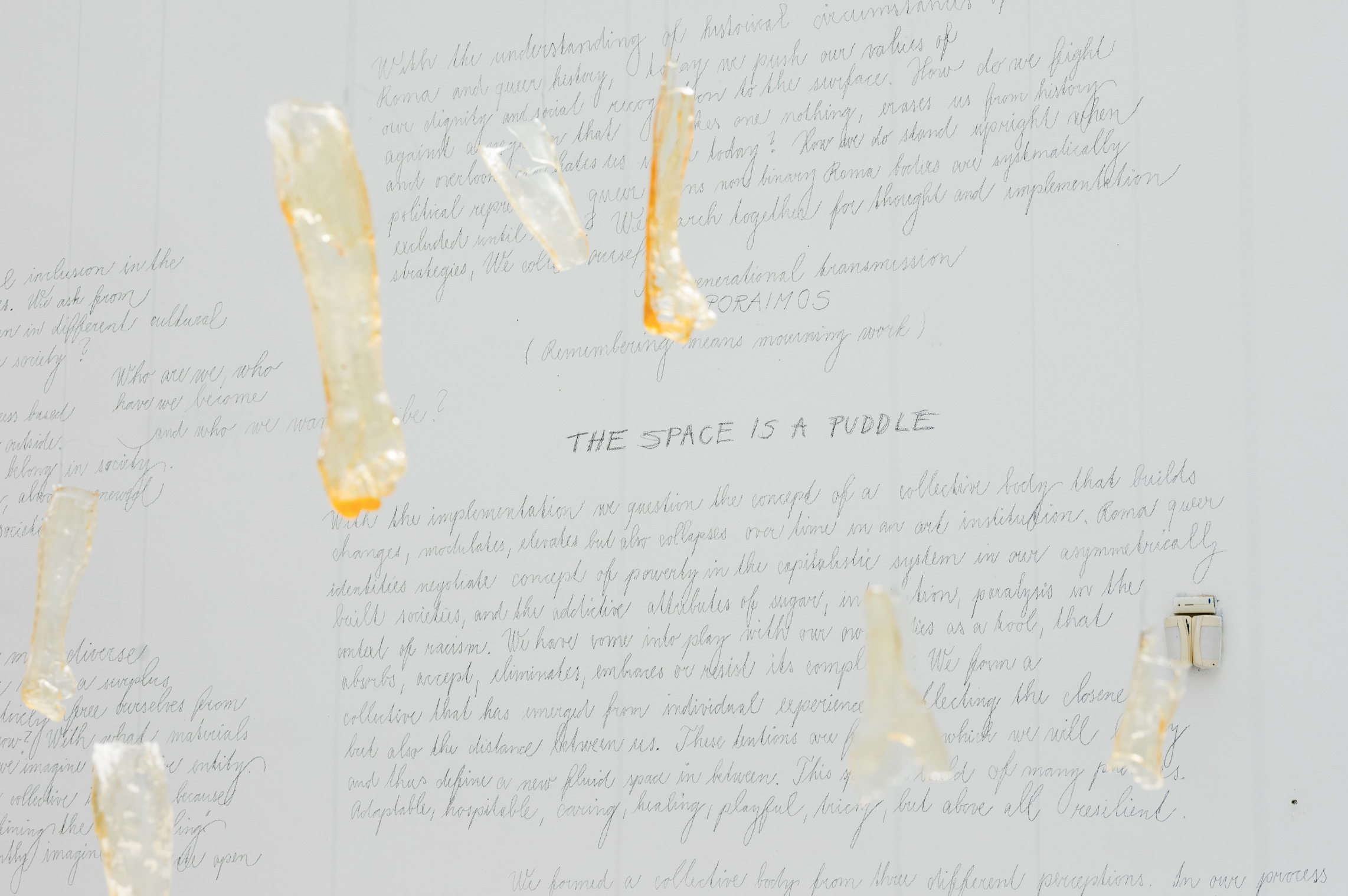 Jak přemýšlet o vztahu násilí a života? Jak můžeme dovolit své zranitelnosti, aby zranitelnou zůstala? Bienále Ve věci umění 2022 zve k objevování různých uměleckých pozic, které kladou tyto navzájem propojené otázky skrze vyjádření různých pocitů, média a další výstupy. Výstava je sborem hlasů, který je někdy harmonický a jindy kakofonický a který hledá cesty, jimiž je možné zpochybnit zažité příběhy o zcela soběstačných hrdinských postavách, jež dokážou vyvinout mimořádné úsilí ke zdolávání nepřízně osudu. Odkud pochází rčení, že co nás nezabije, to nás – a za jakou cenu – posílí? Umění na této výstavě oproti tomu vypráví příběhy o zranitelných tělech a neuspokojivých společenských uspořádáních, jež jsou závislá na jiných a navzájem neoddělitelných tělech, prostředích a infrastrukturách. Umělecká díla jsme vybírali s ohledem na skutečnost, že si všichni musíme hledat své místo v kontextu různých mocenských dynamik a hierarchií. Výstava začleňuje ,menšinovou‘ perspektivu dětí, tzv. neprofesionálních umělců a umělkyň, dospělých dětí a introvertních lidí i ,neplnohodnotnou‘ zkušenost chronicky nemocných, předčasně zemřelých a ,monstrózních lidí‘ jakožto aktérů, kteří jednají, tvoří a určují významy. Vystavená díla jsou si stejně tak vědoma, že násilnost současných podmínek je zakořeněna v historických traumatech a že za každou soudobou krizí, jakými jsou pandemie či válka, tkví minulost. Někdy – jako na této výstavě – získávají dopady násilí na těla a věci prostřednictvím umění výmluvnější podobu. I když nás učili, že utrpení nás posiluje nebo že trauma lze vyléčit, chceme navrhnout alternativní řešení: pečujme o svá zranitelná místa.