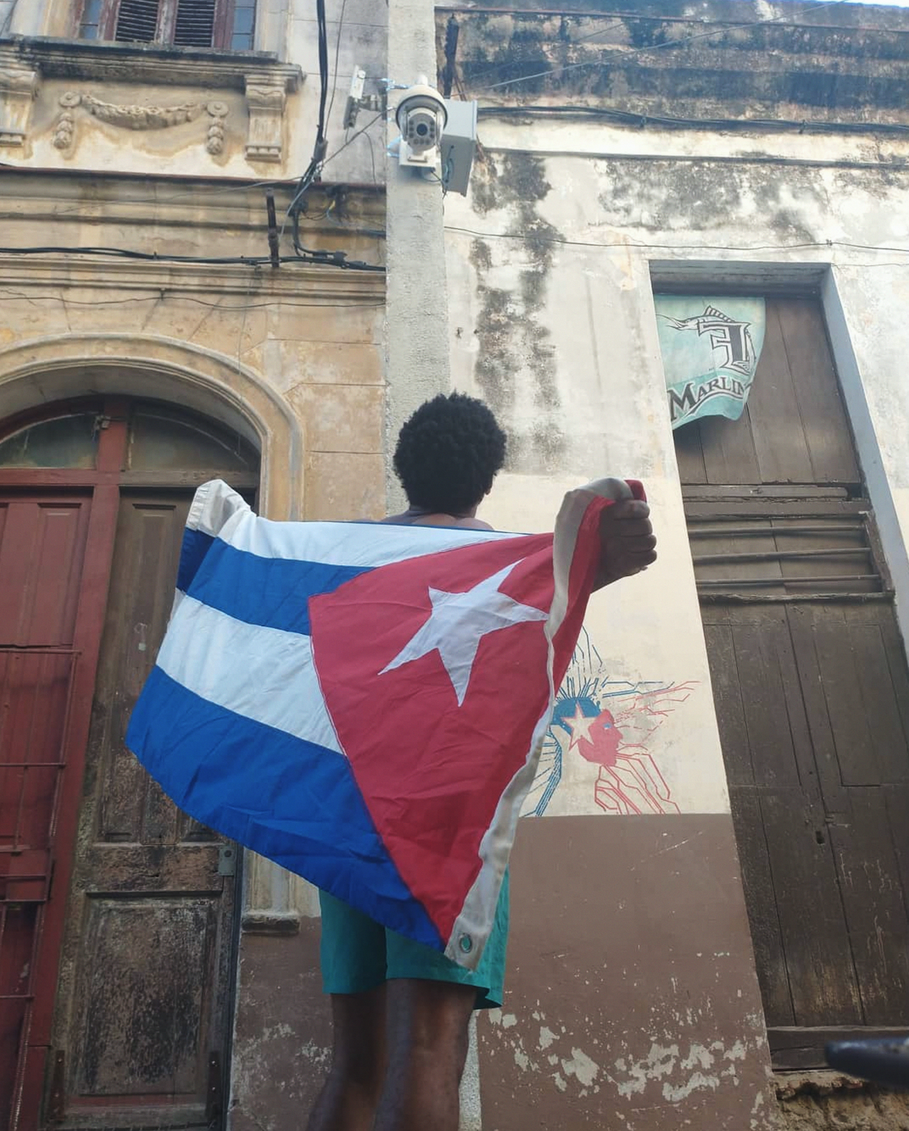 Inspiroval jsem se tedy počinem Daniela Llorenteho a přišel s nápadem uspořádat každoroční závod, kde by mladí Kubánci běhali s americkou vlajkou. Kvůli této akci na mě režim neustále útočí a kritizuje mě i řada lidí, protože prý jsou mi USA milejší než moje rodná země. V reakci na tuto debatu jsem ve veřejném prostoru 24 hodin držel kubánskou vlajku. Později jsem pokračoval projektem Drapo, který také vyvolal hodně kontroverzí. Podobně zní ve francouzštině slovo vlajka (drapeau), ale ve španělštině evokuje výraz trapo, což znamená laciné hadry. Spočívalo to v tom, že ať jsem šel kamkoliv, i na toaletu, nosil jsem kubánskou vlajku – nonstop, 24 hodin denně a sedm dní v týdnu. Vyvolalo to několik otázek: Co je vlast? Kam směřuje? Je naše rodná země břemenem? Dává nám zázemí? Trestá nás? Je v něčem dobrá? U lidí, kteří akci viděli nebo o ní slyšeli, ze všech těchto otázek vyplývaly další a další. Co se týče memu Bandera todo („Vlajka všech“), vznikl jako solidární projev hnutí San Isidro v reakci na to, že mě policie na tři dny zatkla, když jsem začal dělat akce ve veřejném prostoru. Lidi začali interagovat s vlajkou – kreslili ji, malovali si ji na obličej, prostě cokoliv jim připadalo pro tento koncept vhodné. Tak performance pokračovala, i když jsem byl ve vězení – lidé si povídali o tom, jestli jim ta akce dává smysl nebo ne, jestli vlast je nebo není, a vyjadřovali své nápady. Když režim v televizi můj počin odsoudil, debata na toto téma – o vlajce jako o objektu patriotismu – přesto neutichala.