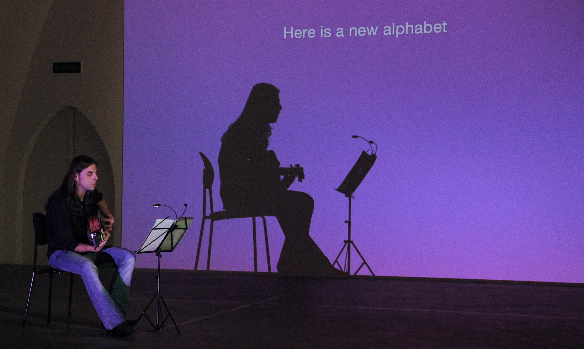 Hajnal Németh, Imagine War – Solo Version, 2014, koncert, 30 minut, vystupuje Isidro Aublin, Galerie Ebensperger Berlin. Foto: János Fodor