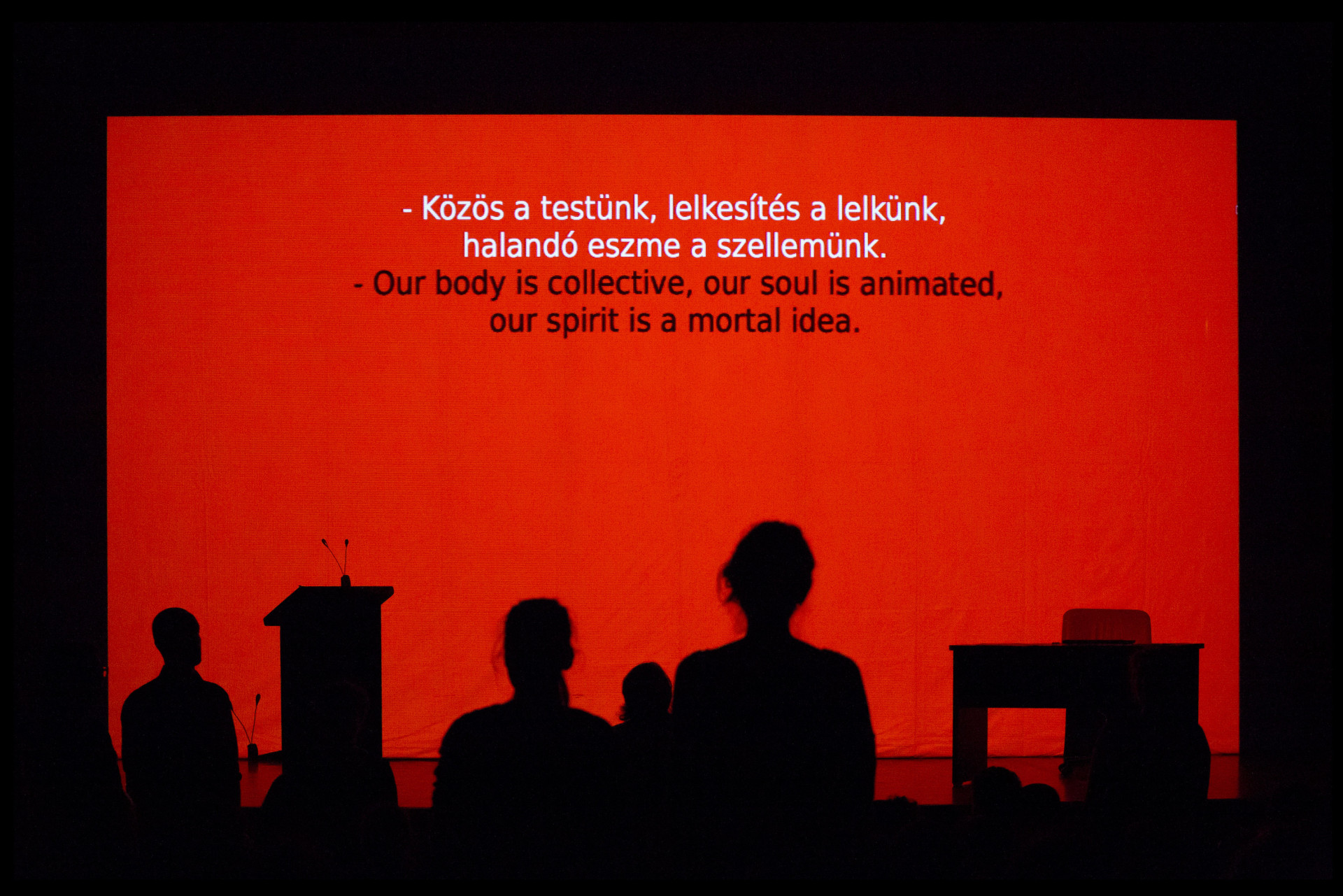 Hajnal Németh, The Loser (The Citizen), 2015, experimentální opera, 40 minut, hudba: Dóra Halas, vystupuje sbor Soharóza, divadlo Átrium Budapešť, vytvořeno s podporou OFF-Biennale Budapest. Foto: Boglárka Zellei