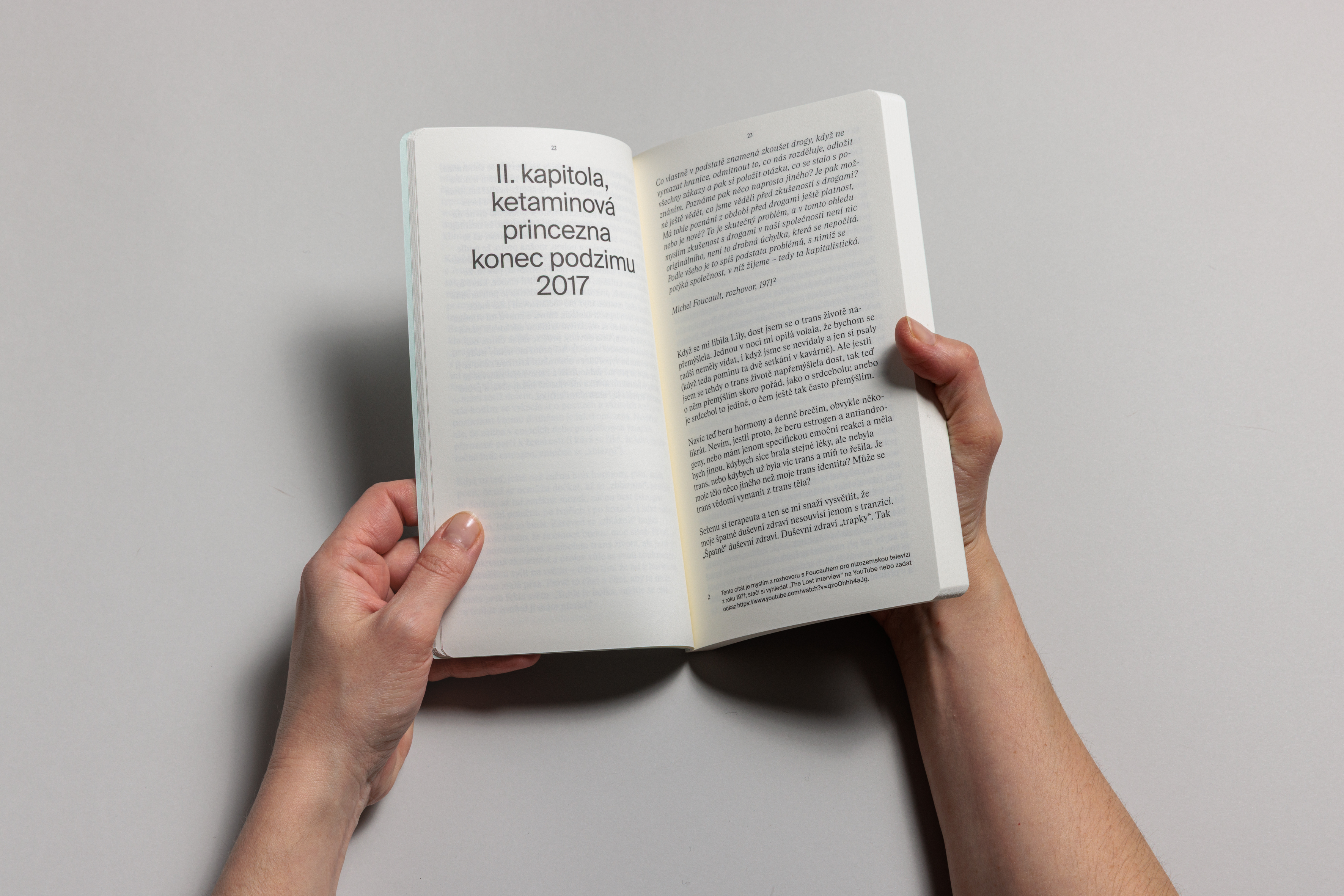 hannah baer nás nechává nahlédnout do svého osobního archivu, provází nás emočními propady své druhé puberty, během které si v ketaminovém opojení manicky zaznamenává proměnlivé úvahy o genderu, sexualitě a patriarchátu. Vše podrobuje hluboké sebereflexi, ve které si zvědomuje své třídní postavení, a deníkové zápisky protkává kritickou teorií, diagramy a memy. Kniha je upřímným cestopisem tranzicí a meditací o naději na přežití v současném světě.