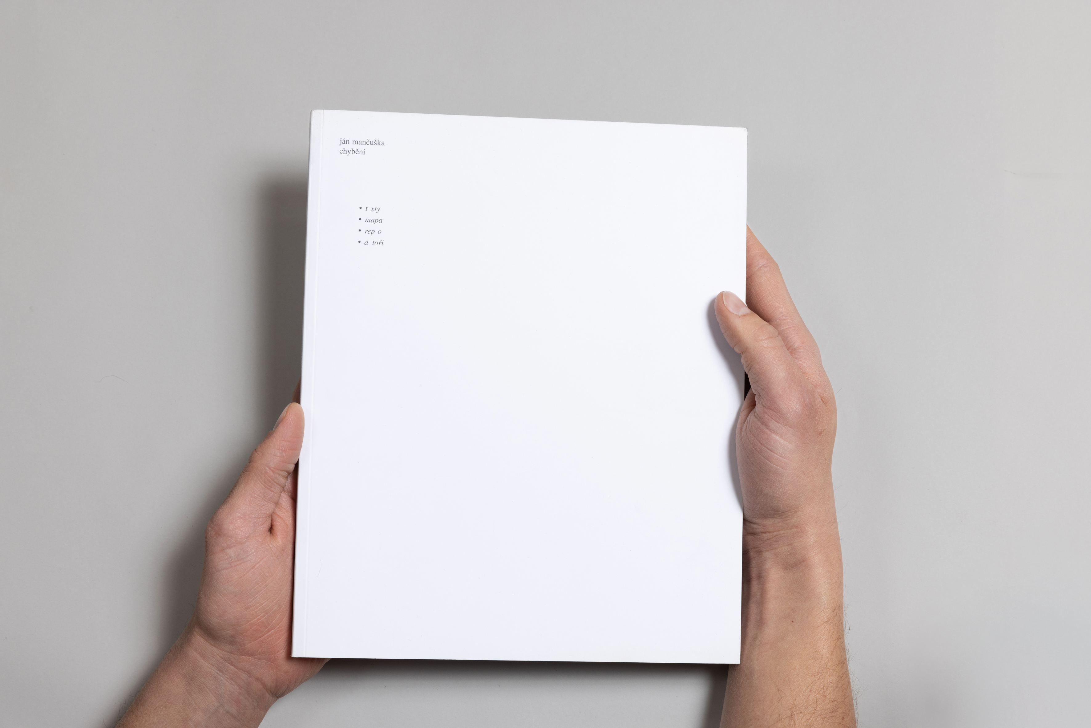Chybění je autorská kniha, není suchým dokumentem, ale hrou s funkcí knihy samotné. Je rozdělená do dvou částí. První – textová část vznikala ve spolupráci s teoretikem Vítem Havránkem a v několika esejích zde autoři definují základní pojmy a principy Mančuškova myšlení. Druhá část knihy mapuje Mančuškovu tvorbu prostřednictvím řady fotografií instalací, náčrtků, textů a popisů. Realizace Jána Mančušky měly povahu specifických výzkumů. Umělec se v nich zabýval zejména způsoby vyprávění příběhů, rozdílnými rychlostmi času, anebo se snažil pracovat s vnímáním diváka ve výstavním prostoru. Prostřednictvím trojrozměrných objektů, instalací, performancí, videa a filmu vytvářel autentické myšlenkové modely a mapy každodennost. Často pracoval s textem - jazykem, který se osamostatňoval do podoby velkorysých časově-prostorových instalací. Fascinovala ho pluralita, simultaneita, nelineárnost a fragmentárnost.