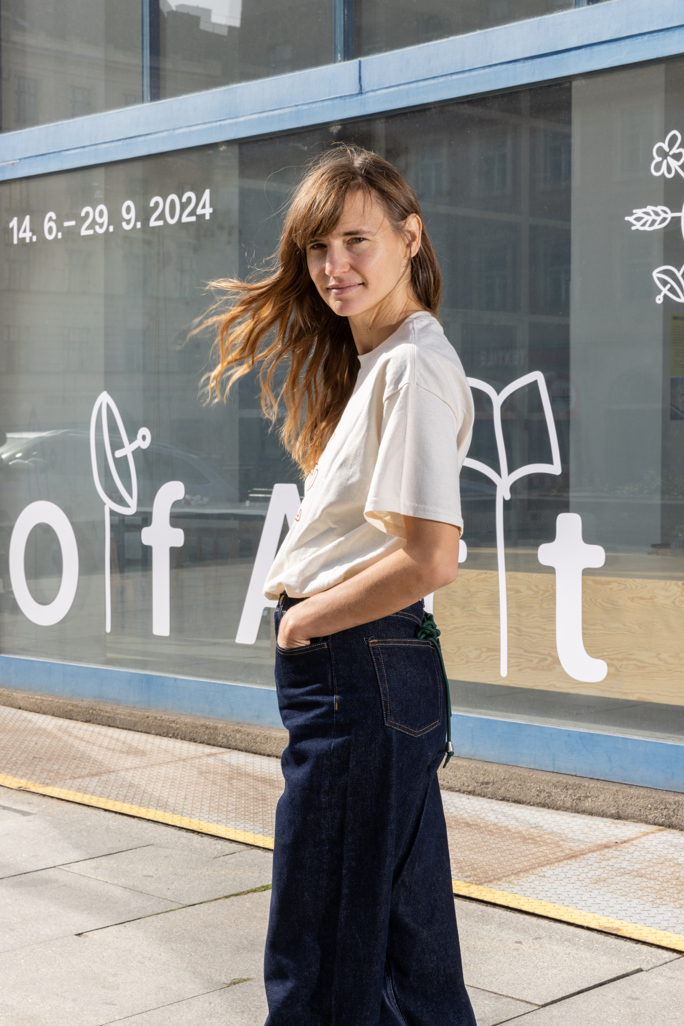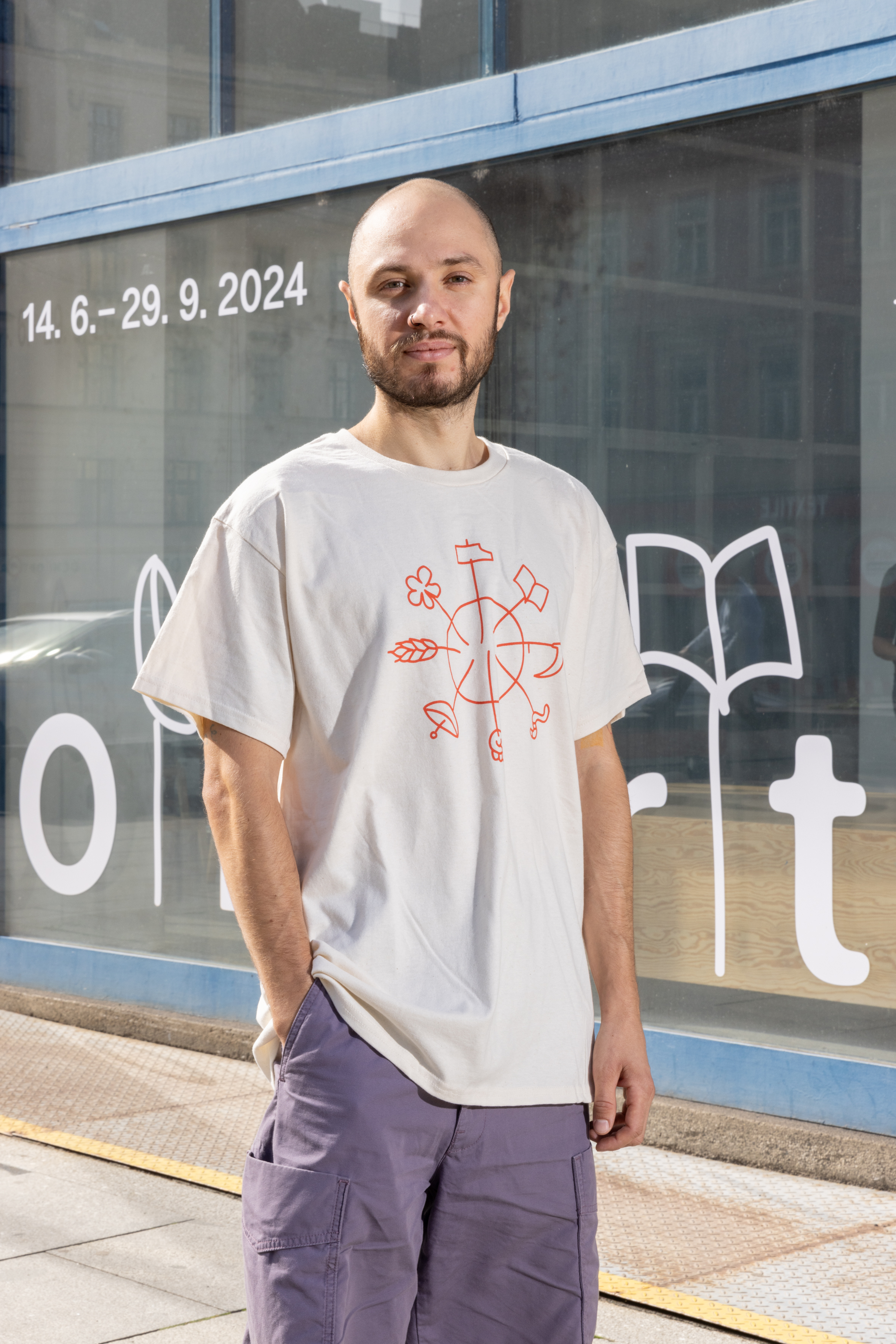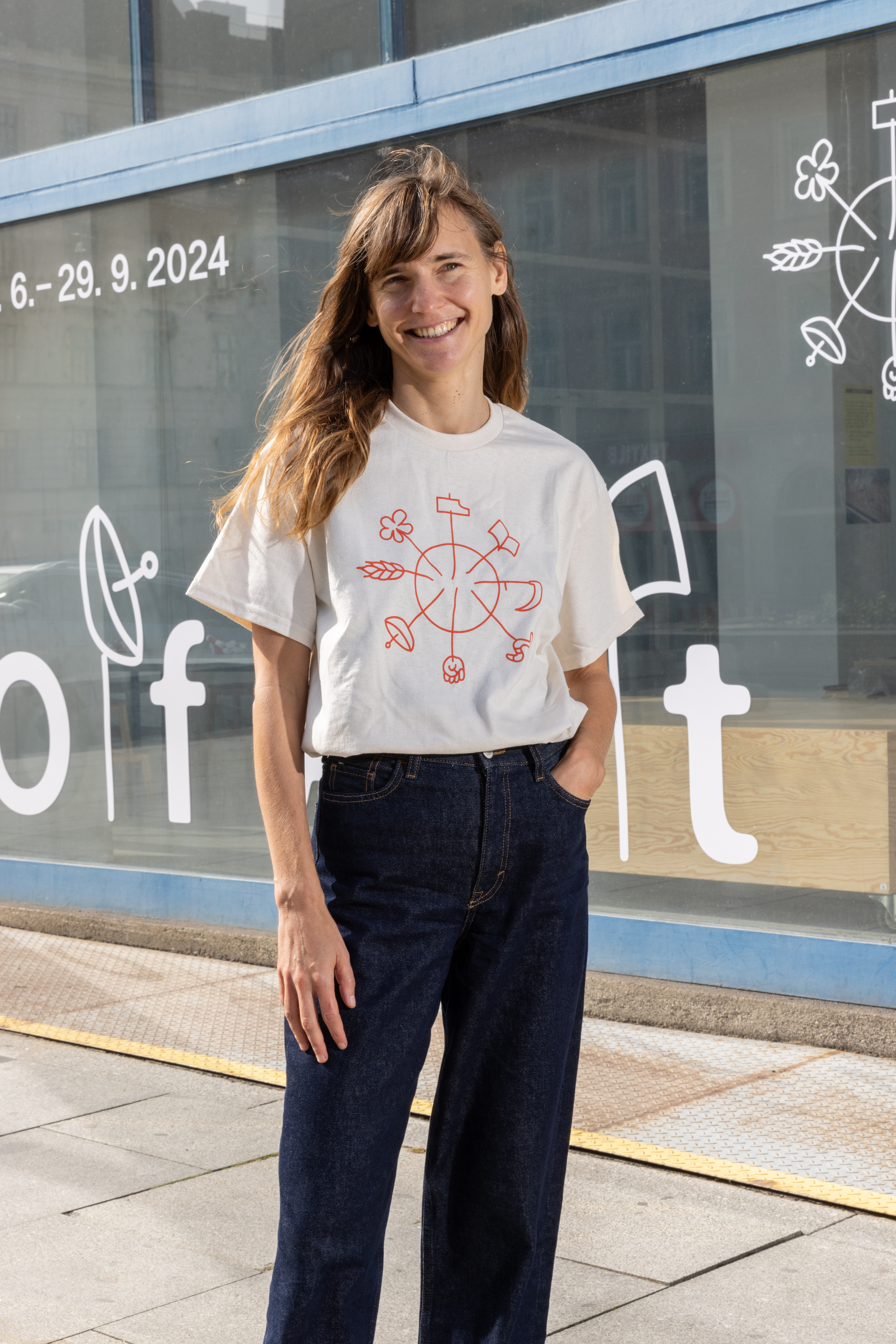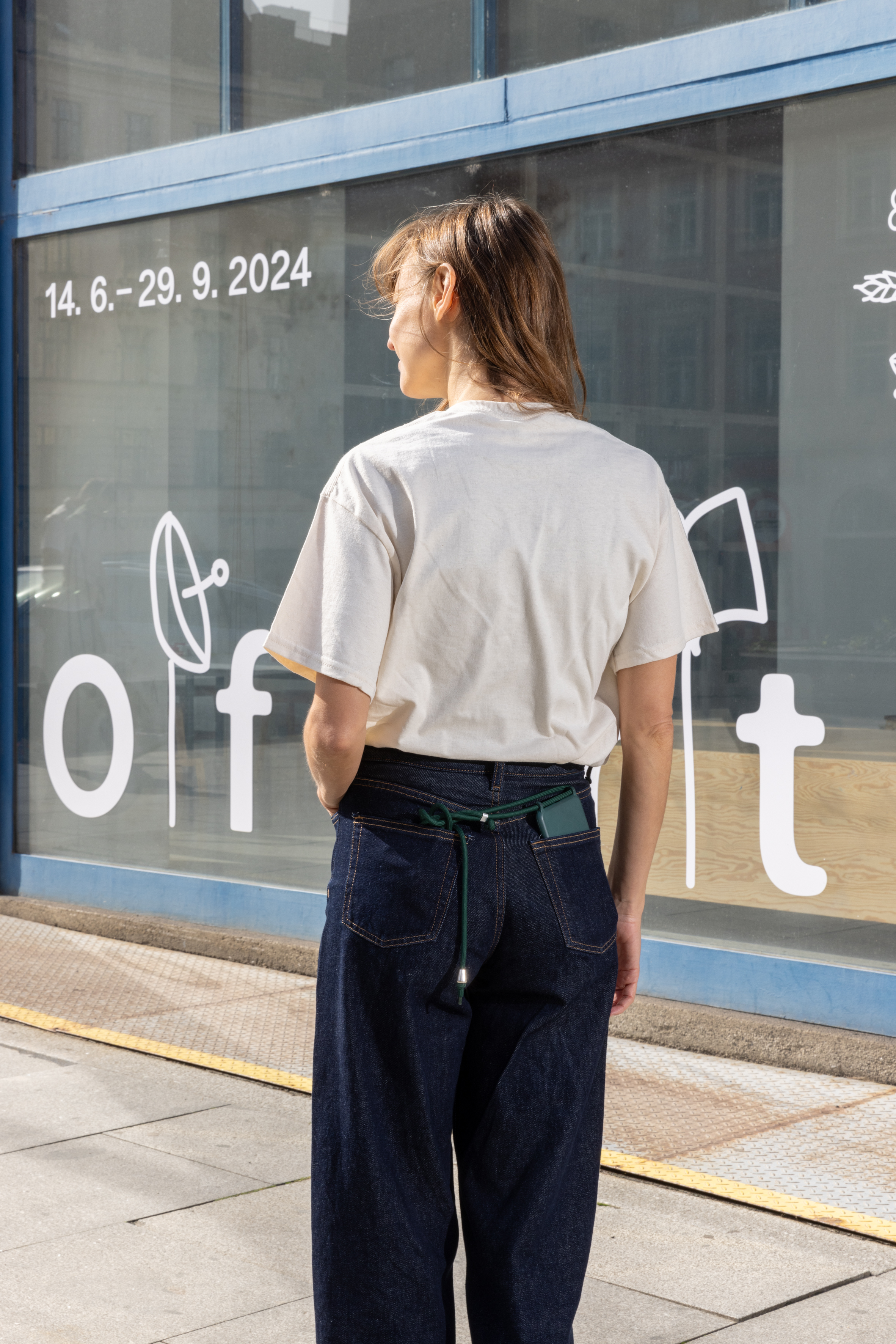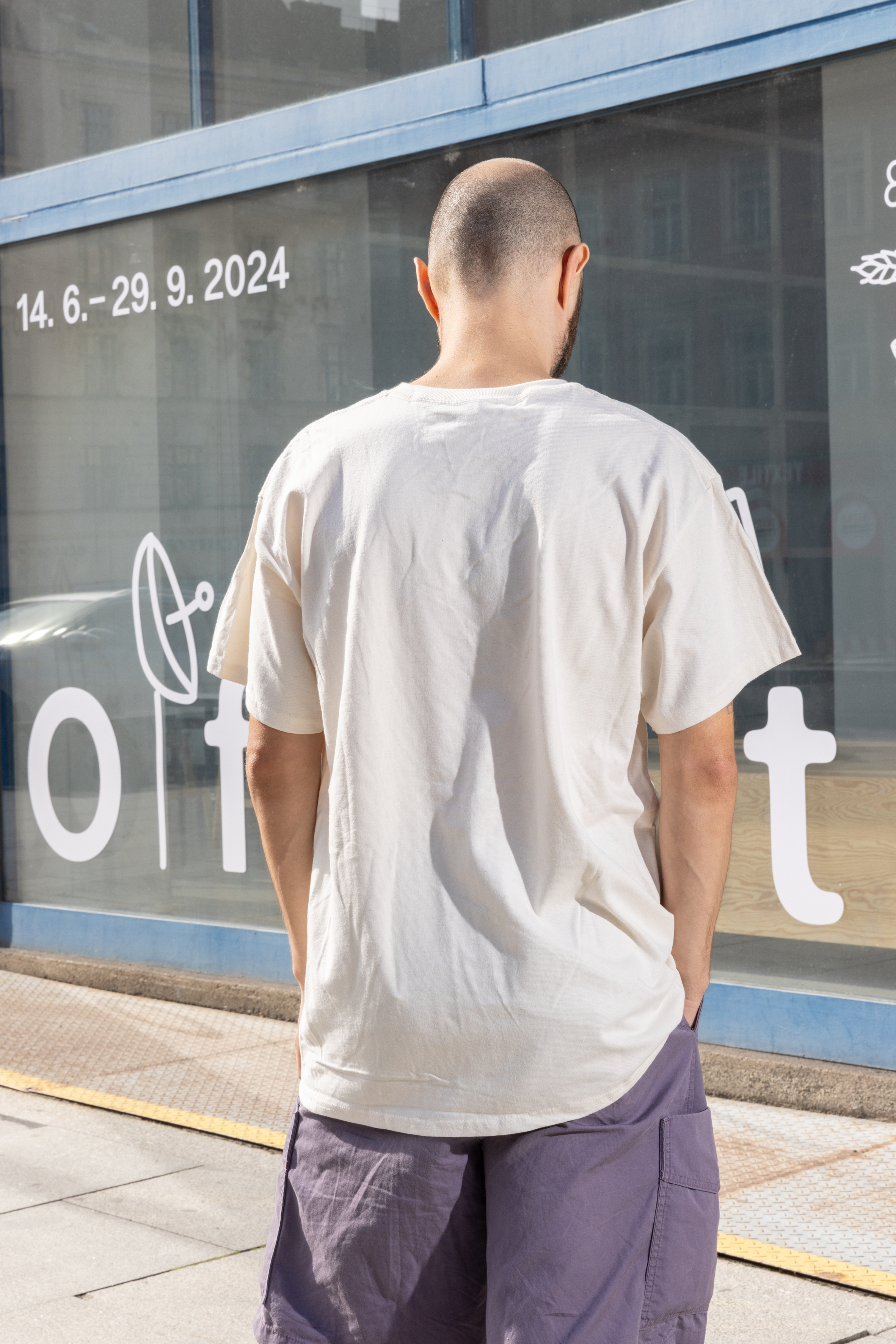 Tričko z organické bavlny s motivem bienále Ve věci umění 2024 v limitované edici v designu studia The Rodina a vyrobené v sítotiskové dílně Fatcat Press. Tričko je dostupné i v modré.
