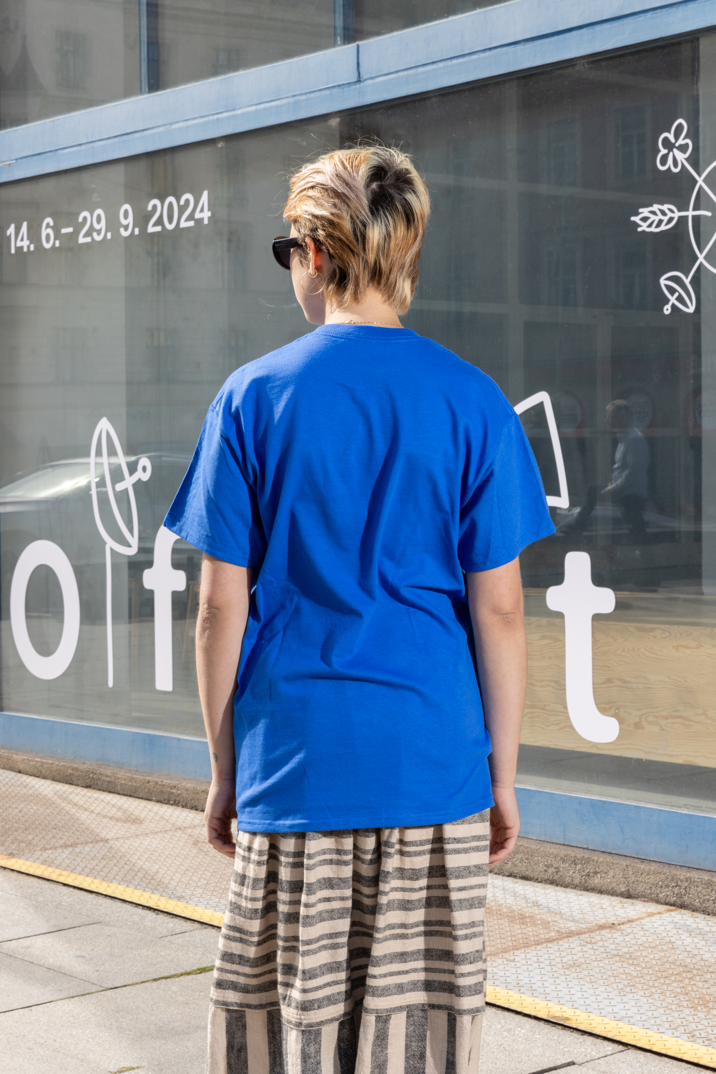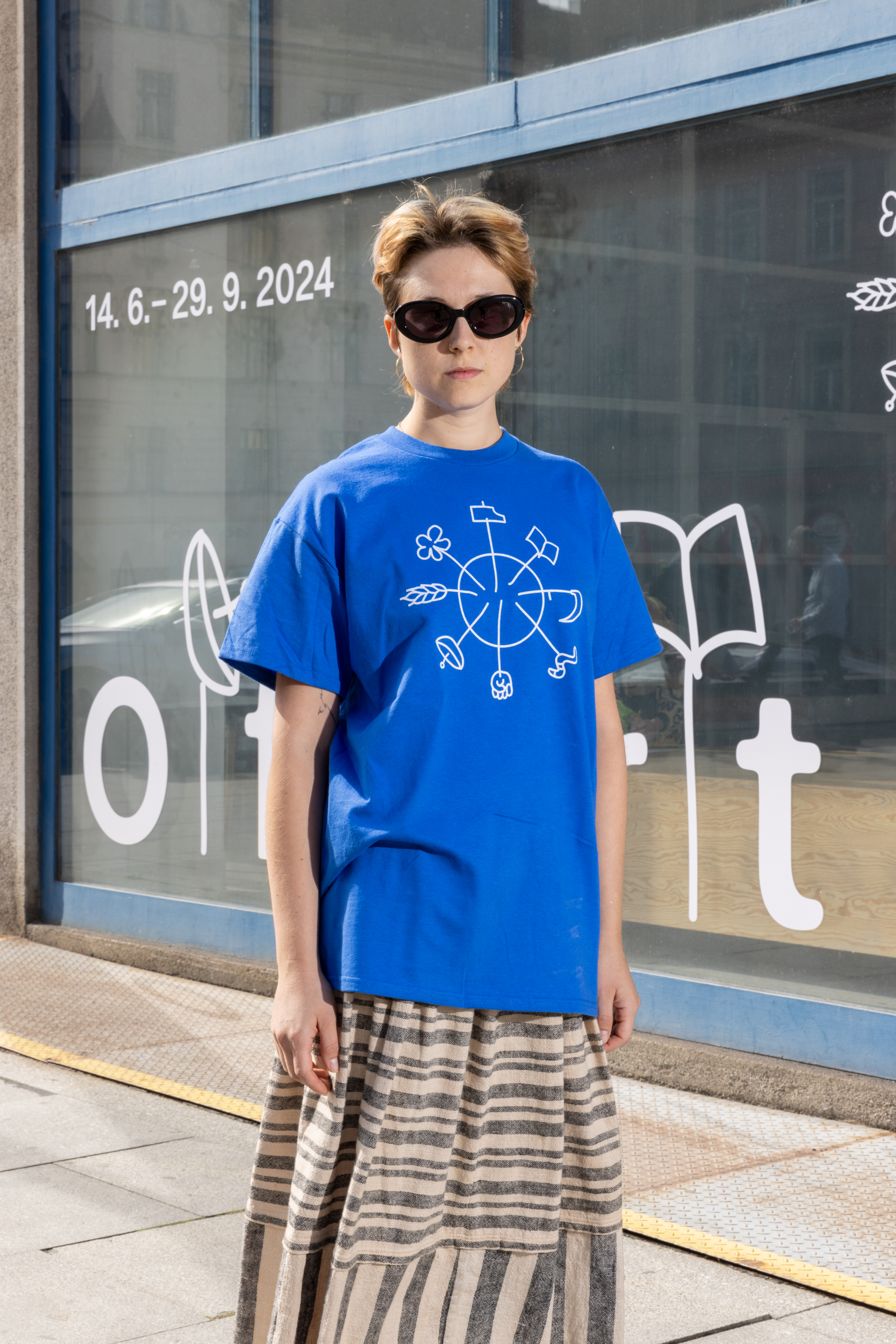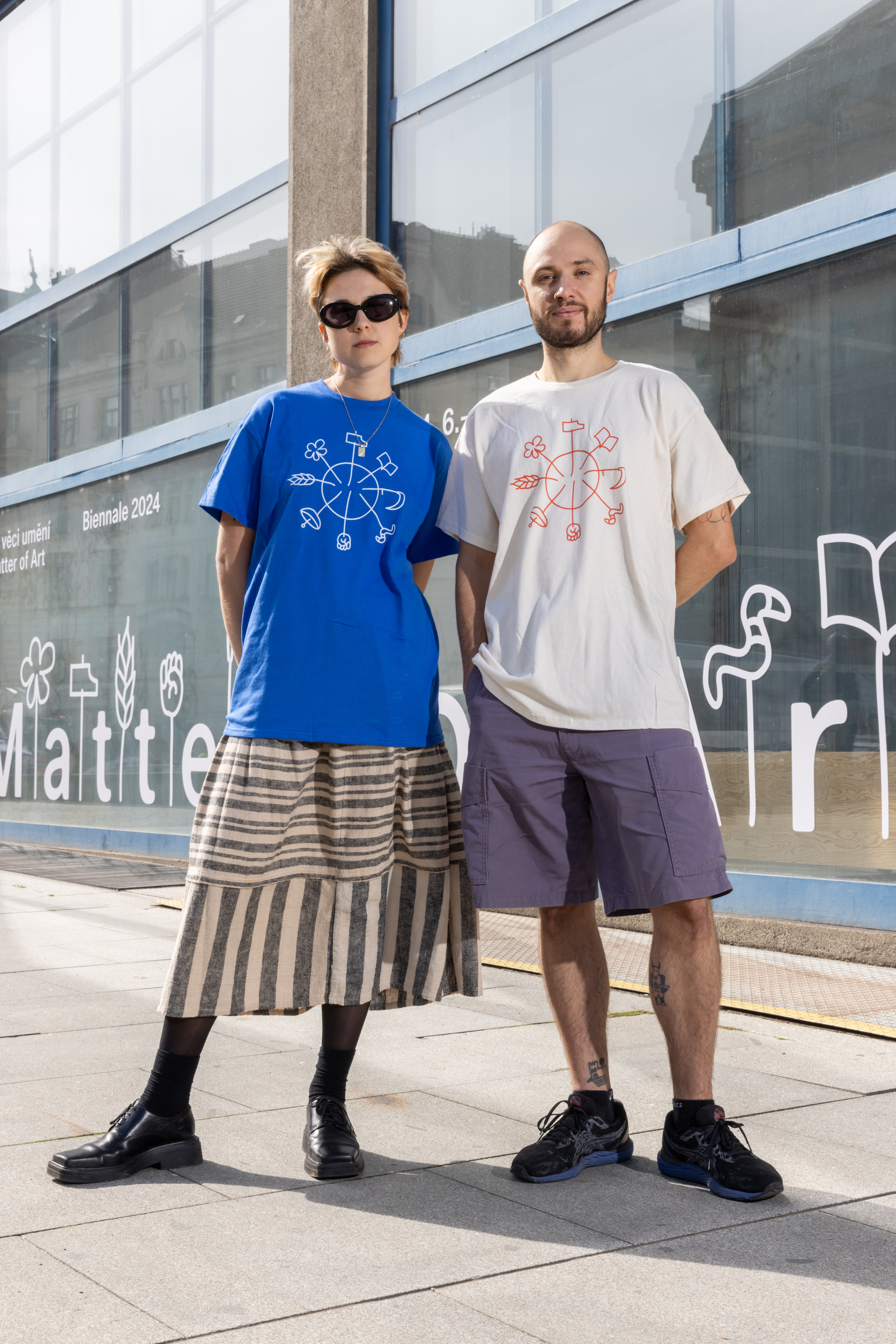 Tričko z organické bavlny s motivem bienále Ve věci umění 2024 v limitované edici v designu studia The Rodina a vyrobené v sítotiskové dílně Fatcat Press. Tričko je dostupné i v béžové barvě.