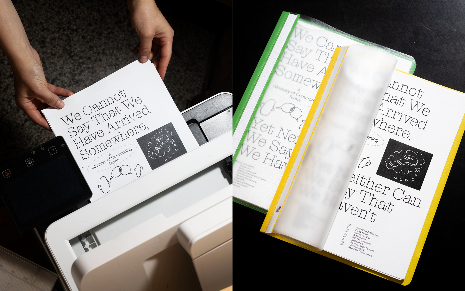 What does it mean to be hospitable, make alliances, or navigate conflict in the sphere of contemporary art? Five European nonprofit art spaces—La Escocesa, OFF-Biennale, < rotor >, Shtatëmbëdhjetë (17), and tranzit.cz—present a new publication for cultural workers, curators, and artists. The book is available in Albanian, Czech, English, German, Hungarian, and Spanish free of charge at www.emotional-labor.eu in various formats (print-at-home, EPUB) and as plain text. The volume is entitled We Cannot Say That We Have Arrived Somewhere, Yet Neither Can We Say That We Haven’t: A Glossary of Commoning Terms, and it summarizes the experiences and learnings of the five socially and politically engaged organizations with community-based and participatory projects at the intersection of visual art, social work, and activism. The book comprises seventeen chapters tackling themes such as self-empowerment, facilitation, emotional labor, hospitality, anti-ableism, and intersectionality.